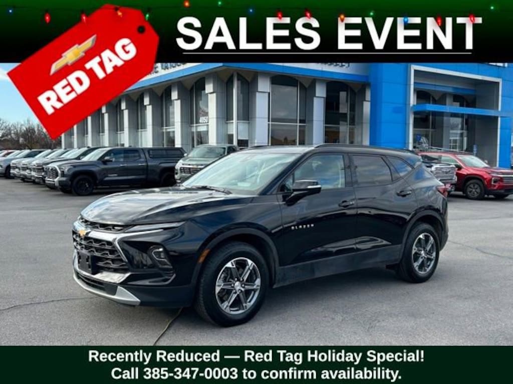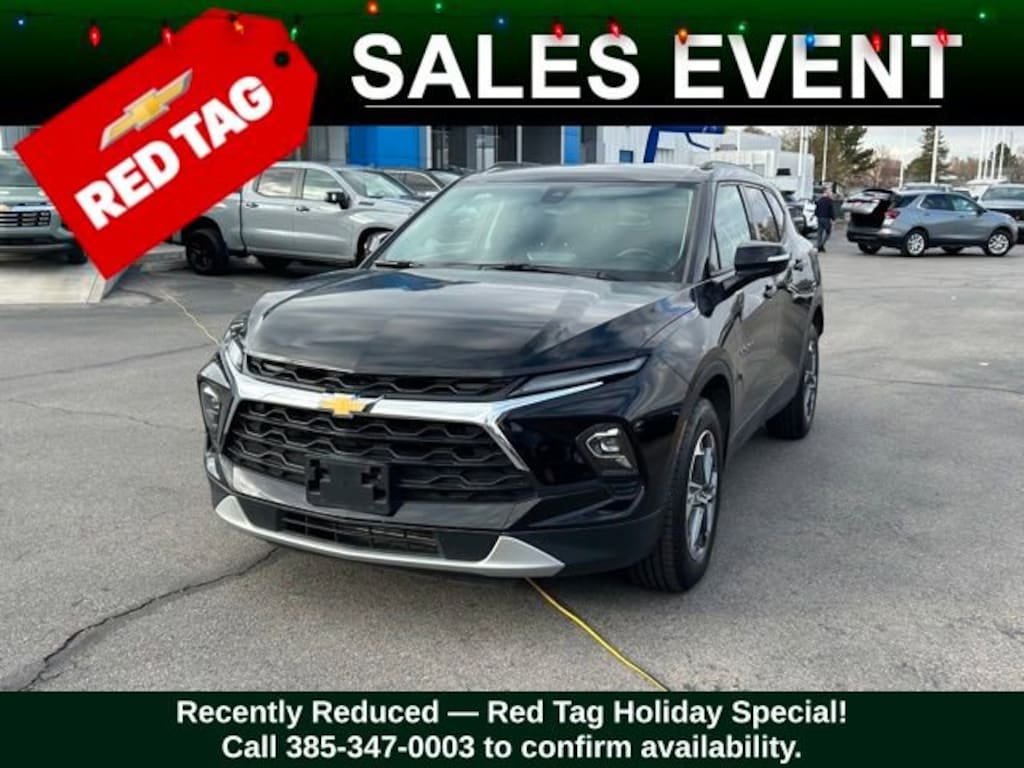Turn every drive into something special with this Chevrolet Blazer from Salt Lake Valley Chevrolet! Designed for comfort, performance, and style, this vehicle comes fully equipped with modern technology and convenience features youâll love. Plus, enjoy a $1,000 finance savings, already included in the sale price, when you finance through one of our trusted lending partners. If youâre shopping for used cars in Salt Lake City, or searching for the perfect SUV, truck, or sedan, this Chevrolet Blazer delivers the dependability and value youâre looking for. Itâs the ideal match for your lifestyle - ready for everything from mountain adventures to city commutes. Visit Salt Lake Valley Chevrolet today and see why so many Utah drivers trust us for great deals on quality pre-owned vehicles. Explore our inventory online at www.slvchevy.com or call 801-969-8221 to schedule your test drive today! This impressive vehicle includes Driver Confidence Package (Lane Change Alert w/Side Blind Zone Alert, Rear Cross Traffic Alert, and Rear Park Assist w/Audible Warning), Preferred Equipment Group 3LT (6-Way Power Front Passenger Seat Adjuster, Black Roof-Mounted Side Rails, Inside Rear-View Auto-Dimming Mirror, Outside Heated Power-Adjustable Body-Color Mirrors, Rear Power Programmable Liftgate, and Universal Home Remote), 170 Amp Alternator, 3.47 Final Drive Axle Ratio, 4-Wheel Disc Brakes, 6 Speakers, 6-Speaker Audio System Feature, 8-Way Power Driver Seat Adjuster, ABS brakes, Air Conditioning, Alloy wheels, AM/FM radio: SiriusXM with 360L, Apple CarPlay/Android Auto, Auto High-beam Headlights, Auto-dimming door mirrors, Auto-dimming Rear-View mirror, Automatic temperature control, Brake assist, Bumpers: body-color, Child-Seat-Sensing Airbag, Compass, Delay-off headlights, Driver door bin, Driver vanity mirror, Dual front impact airbags, Dual front side impact airbags, Electronic Stability Control, Emergency communication system: OnStar and Chevrolet connected services capable, Four wheel independent suspension, Front anti-roll bar, Front Bucket Seats, Front Center Armrest, Front dual zone A/C, Front reading lights, Fully automatic headlights, Garage door transmitter, Heated door mirrors, Heated Driver & Front Passenger Seats, Heated front seats, Illuminated entry, Knee airbag, Leather Shift Knob, Leather steering wheel, Low tire pressure warning, Occupant sensing airbag, Outside temperature display, Overhead airbag, Overhead console, Panic alarm, Passenger door bin, Passenger vanity mirror, Perforated Leather-Appointed Seat Trim, Power door mirrors, Power Driver Lumbar Control, Power driver seat, Power Liftgate, Power passenger seat, Power steering, Power windows, Premium audio system: Chevrolet Infotainment 3 Plus, Radio data system, Radio: Chevrolet Infotainment 3 Plus System, Rear anti-roll bar, Rear reading lights, Rear seat center armrest, Rear window defroster, Rear window wiper, Remote keyless entry, Ride & Handling Suspension, Security system, SiriusXM w/360L, Speed control, Speed-sensing steering, Split folding rear seat, Spoiler, Steering wheel mounted audio controls, Tachometer, Telescoping steering wheel, Tilt steering wheel, Traction control, Trip computer, Turn signal indicator mirrors, Variably intermittent wipers, Voltmeter, and Wheels: 18 Grazen Metallic Aluminum, offering everything you need for your next adventure.