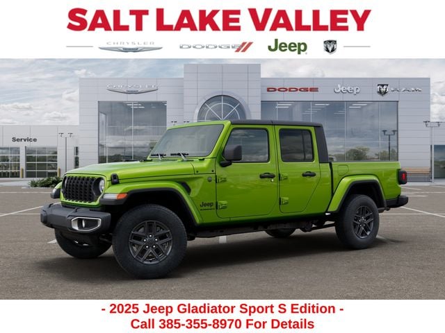 Adventure starts with the new Jeep Gladiator available now at Salt Lake Valley CDJR in Salt Lake City! Built for Utahâs canyons, trails, and highways alike, Jeep delivers freedom and capability in every mile. Discover why Gladiator drivers love to explore with confidence. Contact us at 801-484-8755 to schedule a time to see it today! 2025 Jeep Gladiator Sport S Mojito 3.6L V6 24V VVT