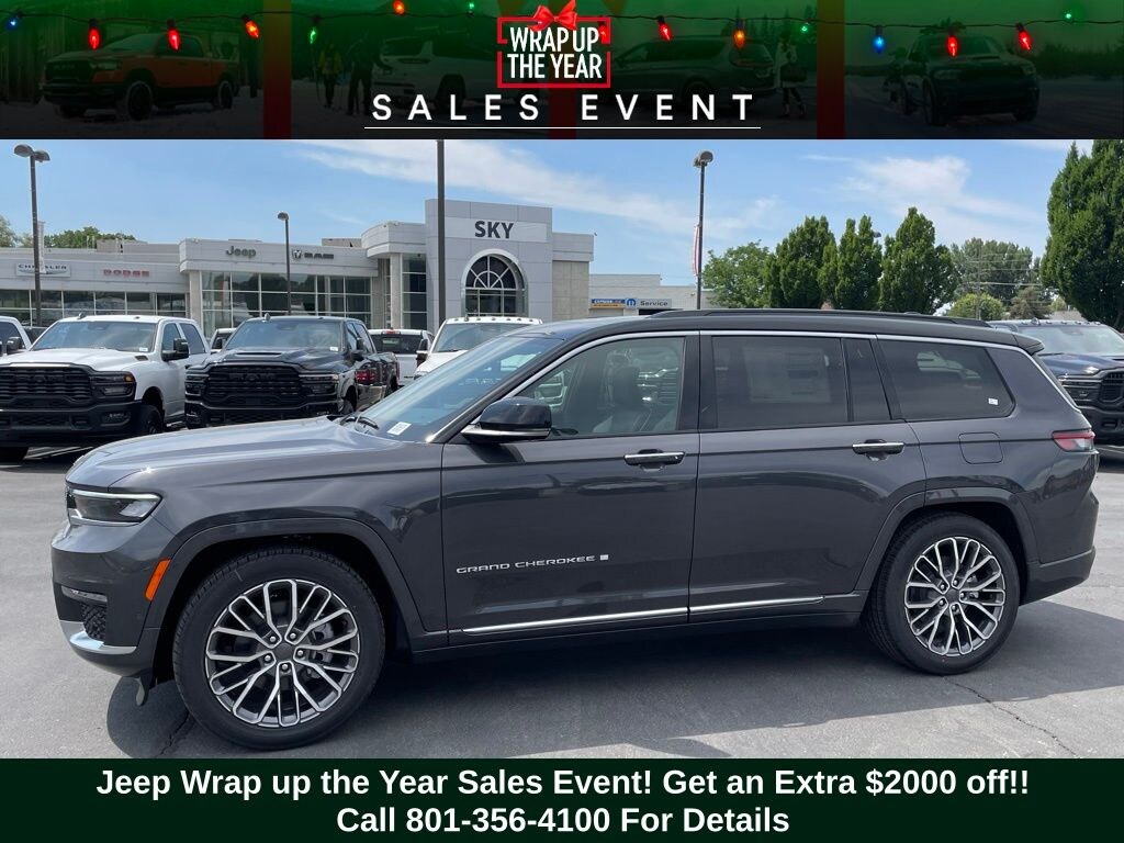Adventure starts here with the new Jeep Grand Cherokee L, available now at Sky CDJR of Provo! As your local Jeep dealership near Salt Lake City, we know how to match Utah drivers with legendary 4x4 capability and open-road freedom. Whether itâs mountain trails or desert drives, the Grand Cherokee L is ready to take you there. Call 801-356-4100 today to start your next adventure! Baltic Gray Metallic Clearcoat 2025 Jeep Grand Cherokee L Summit 4WD 8-Speed Automatic 3.6L V6 24V VVT