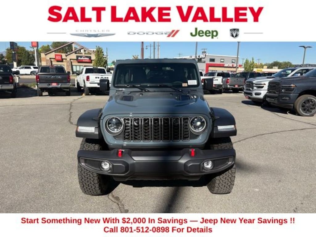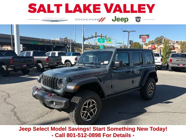 Adventure starts with the new Jeep Wrangler available now at Salt Lake Valley CDJR in Salt Lake City! Built for Utahâs canyons, trails, and highways alike, Jeep delivers freedom and capability in every mile. Discover why Wrangler drivers love to explore with confidence. Contact us at 801-484-8755 to schedule a time to see it today! 2025 Jeep Wrangler Rubicon Anvil Clear Coat 3.6L V6 24V VVT