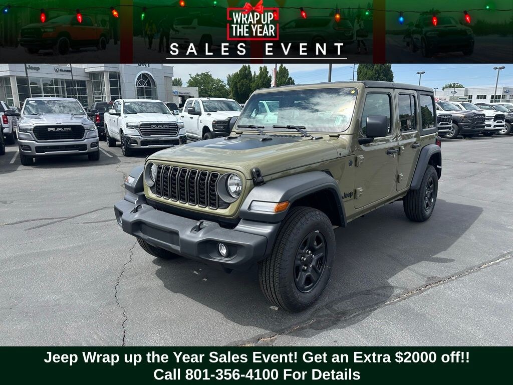 Adventure starts here with the new Jeep Wrangler, available now at Sky CDJR of Provo! As your local Jeep dealership near Salt Lake City, we know how to match Utah drivers with legendary 4x4 capability and open-road freedom. Whether itâs mountain trails or desert drives, the Wrangler is ready to take you there. Call 801-356-4100 today to start your next adventure! 41 2025 Jeep Wrangler Sport 4WD 8-Speed Automatic 3.6L V6 24V VVT