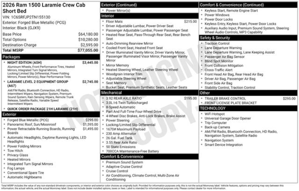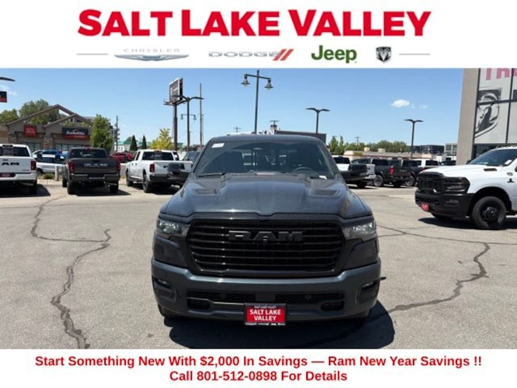 --- Please note that the final selling price does not include tax, tag, title, documentation fees, dealer-installed options, or pricing adjustments due to market demand. Financing through Chrysler Capital is required for all discounts to be applied. Special finance offers may not be combined with some factory incentives. While we strive for accuracy, errors may occur, so please verify all information with a customer service representative. For the most accurate pricing, call us at (801) 484-8775 or visit our dealership in person. Prices and payments are subject to change based on manufacturer incentives. Price may include: $3500 - 2026 National Retail Consumer Cash . Exp. 02/02/2026 ...$2,000 Select Inventory Bonus Cash May not be combined with some offers. Residency restrictions apply see dealer for details ..Sale price includes a $1,500 trade-in allowance for customers who own a 2019 or newer passenger car or truck with 100,000 miles or less and trade it toward the purchase of an eligible new 2026â"2026 Chrysler, Dodge, Jeep, or Ram. Vehicles with branded or salvage titles do not qualify. See dealer for details. ...Sale price includes a $2,500 conditional Ram finance discount. To qualify, customer must finance or lease through Chrysler Capital. Factory-subsidized interest rate loans are not eligible. If customer does not finance or lease through Chrysler Capital, the $2,500 finance discount will not apply and sale price will increase by $2,500. Some restrictions may apply. See dealer for details.