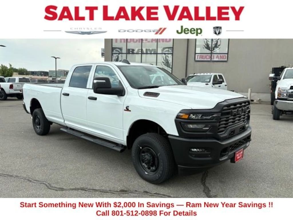 Get the job done and have fun doing it with the new Ram 2500 from Salt Lake Valley CDJR! Power, durability, and innovation come together in every Ram truck. Whether youâre working hard or exploring Utahâs backroads, the 2500 is built to handle it all. Call us today at 801-484-8755 to schedule a time to check it out! 2026 Ram 2500 Tradesman Bright White Clearcoat 6.7L I6