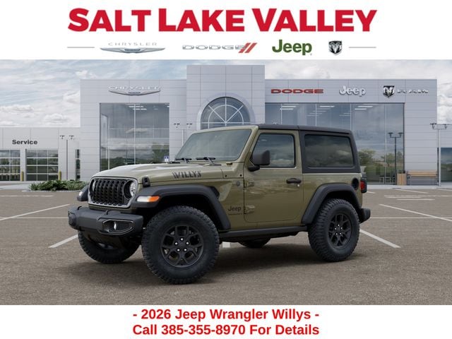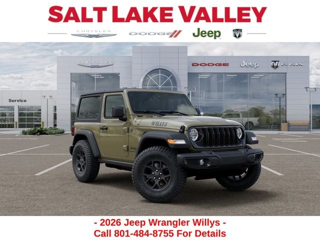 Adventure starts with the new Jeep Wrangler available now at Salt Lake Valley CDJR in Salt Lake City! Built for Utahâs canyons, trails, and highways alike, Jeep delivers freedom and capability in every mile. Discover why Wrangler drivers love to explore with confidence. Contact us at 801-484-8755 to schedule a time to see it today! 2026 Jeep Wrangler Willys 41 2.0L I4 DOHC