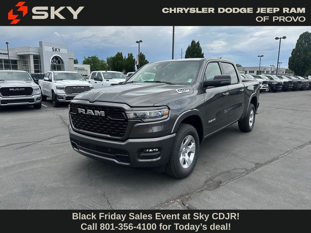 Bed Utility Group (Exterior 115V AC Outlet, MOPAR 4 Adjustable Cargo Tie-Down Hooks, MOPAR Spray In Bedliner, and Pick-Up Box Lighting), Big Horn Level 1 Equipment Group (115V Auxiliary Power Outlet, 2nd Row In Floor Storage Bins, 400W Inverter, Auto Power-Folding Mirrors, Auto-Dimming Exterior Driver Mirror, Auto-Dimming Rear-View Mirror, Black Exterior Mirrors, Black Premium Power Mirrors, Convex Wide-Angle Exterior Mirror Insert, Exterior Mirrors Courtesy Lamps, Exterior Mirrors w/Heating Element, Exterior Mirrors w/Supplemental Signals, Glove Box Lamp, Heated Front Seats, Heated Steering Wheel, Leather Wrapped Steering Wheel, Power 2-Way Driver Lumbar Adjust, Power Adjust 8-Way Driver Seat, Power Adjustable Pedals, Rear Power Sliding Window, Rear Window Defroster, Steering Wheel Mounted Audio Controls, Sun Visors w/Illuminated Vanity Mirrors, and Universal Garage Door Opener), Quick Order Package 21Z Big Horn, Sport Appearance Package (3 Rear Seat Head Restraints, 4 Way Front Headrests, Black Interior Accents, Body Color Door Handles, Body Color Front Bumper, Body Color Rear Bumper w/Step Pads, Body Color Tailgate Handle, Bucket Seats, Deluxe Cloth Bucket Seats, Front Seat Back Map Pockets, Full Length Floor Console, Grille Surround 1 Body Color Texture 1 Black, Manual Adjust 4-Way Front Passenger Seat, RAM Grille Badge - Chrome, Rear 60/40 Folding Seat, and Rear Center Armrest), 33 Gallon Fuel Tank, 4-Wheel Disc Brakes, 4G LTE Wi-Fi Hot Spot, 6 Speakers, ABS brakes, Air Conditioning, Alloy wheels, AM/FM radio, Apple CarPlay/Android Auto, Auto High-beam Headlights, Brake assist, Bumpers: chrome, Cloth Bench Seat, Compass, Connectivity - US/Canada, Delay-off headlights, Driver door bin, Dual front impact airbags, Dual front side impact airbags, Electronic Stability Control, Front anti-roll bar, Front Center Armrest w/Storage, Front fog lights, Front License Plate Bracket, Front reading lights, Front wheel independent suspension, Fully automatic headlights, GPS Antenna Input, Heated door mirrors, Illuminated entry, Integrated Voice Command w/Bluetooth, Low tire pressure warning, Manual Folding Exterior Mirrors, Manufacturer's Statement of Origin, MOPAR Front & Rear Rubber Floor Mats, Occupant sensing airbag, Outside temperature display, Overhead airbag, Overhead console, Panic alarm, ParkView Rear Back-Up Camera, Passenger door bin, Passenger vanity mirror, Power door mirrors, Power steering, Power windows, Radio data system, Radio: Uconnect 5 W w/8.4" Display, Rear anti-roll bar, Rear seat center armrest, Rear step bumper, Remote keyless entry, Speed control, Split folding rear seat, Supplier Part Tracking (J-1), Tachometer, Telescoping steering wheel, Tilt steering wheel, Traction control, Trailer Brake Control, Trip computer, USB Host Flip, Variably intermittent wipers, Voltmeter, and Wheels: 18" x 8" Cast-Aluminum Painted. Price may include: 10% Msrp - 2025 National 10% Below MSRP . Exp. 12/01/2025 $1,500 trade in allowance program for customers that own a 2018 or newer passenger car or truck with less than 80,000 miles and trade in their vehicle towards the purchase of a new vehicle. Some restrictions may apply. Contact dealer for details. $2,000 Down Payment Assistance. Must Finance with CCAP. May not be combined with some factory incentives. Contact dealer for details.
