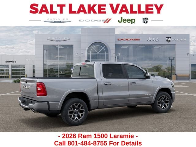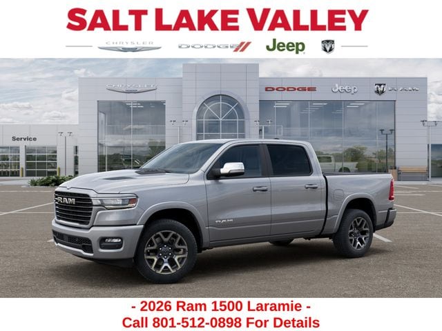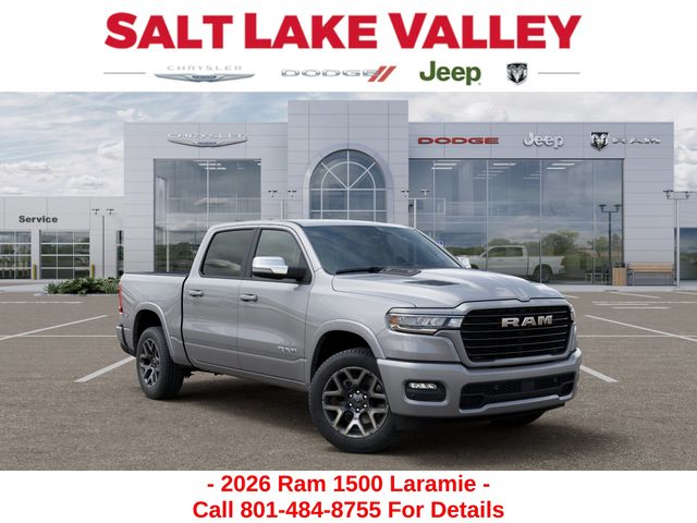 Get the job done and have fun doing it with the new Ram 1500 from Salt Lake Valley CDJR! Power, durability, and innovation come together in every Ram truck. Whether youâre working hard or exploring Utahâs backroads, the 1500 is built to handle it all. Call us today at 801-484-8755 to schedule a time to check it out! 2026 Ram 1500 Laramie Billet Silver Metallic Clearcoat 3.0L I6