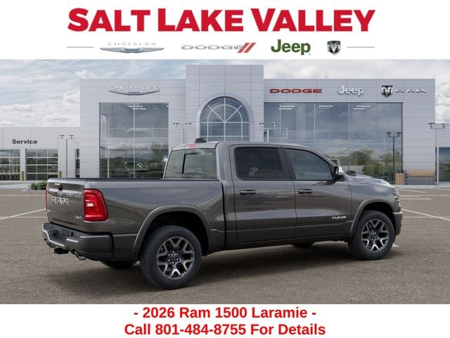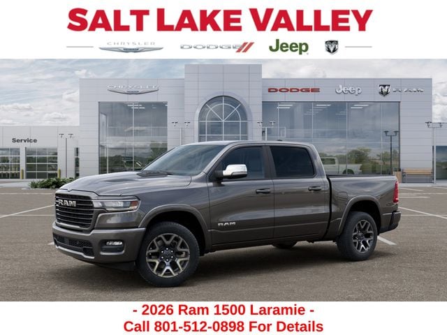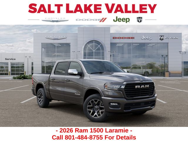 Get the job done and have fun doing it with the new Ram 1500 from Salt Lake Valley CDJR! Power, durability, and innovation come together in every Ram truck. Whether youâre working hard or exploring Utahâs backroads, the 1500 is built to handle it all. Call us today at 801-484-8755 to schedule a time to check it out! 2026 Ram 1500 Laramie Granite Crystal Metallic Clearcoat 3.0L I6