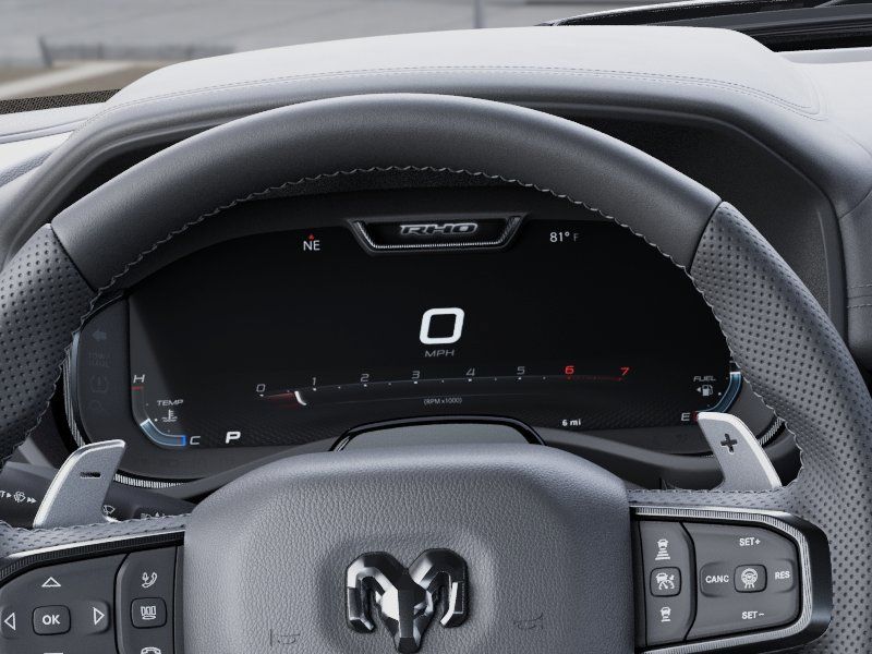 Quick Order Package 22Y RHO, RHO Level 1 Equipment Group (12-Way/1-Way Trailer Connector, 14.4" Touchscreen Display, 240 Amp Alternator, 4G LTE Wi-Fi Hot Spot, Connected Travel and Traffic Services, Connectivity - US/Canada, Disassociated Touchscreen Display, Driver Power Seat Back Massage, Driver Seat Memory, Driver/Passenger Wrapped Assist Handles, Drowsy Driver Detection, Dual Wireless Charging Pad, Evasive Steer Assist, Exterior Mirrors with Memory, Front Passenger Interactive Display, Front Passenger Power Seat Back Massage, Full Length Premium Upgraded Floor Console, GPS Navigation, Hands-Free Active Driving Assist System, Harman/Kardon 19 Speaker Premium Sound, HD Radio, Heads-Up Display, Heated Second Row Seats, Integrated Center Stack Radio, Integrated Voice Command with Bluetooth, Intersection Collision Assist System, Leather/Carbon Flat-Bottom Steering Wheel, LED CHMSL Lamp, Luxury Front Door Trim Panel, Power Adjustable Pedals with Memory, Power Tailgate, Premium Wrapped Instrument Panel Bezel, Radio: Uconnect 5 Nav with 14.4" Display, Radio/Driver Seat/Mirrors/Pedals Memory, Rain Sensitive Windshield Wipers, Real Carbon Fiber Interior Accents, Rear 60/40 Folding Split Recline Seat, SiriusXM Radio Service, Smartphone as a Key Capable, Surround View Camera System, Traffic Sign Recognition, USB Host Flip, Ventilated Front Seats, and Ventilated Rear Seats), 10 Speakers, 3.92 Rear Axle Ratio, 4-Wheel Disc Brakes, ABS brakes, Adaptive suspension, Adjustable pedals, Air Conditioning, Alloy wheels, AM/FM radio, Apple CarPlay/Android Auto, Auto High-beam Headlights, Auto Power-Folding Mirrors, Auto-dimming door mirrors, Auto-Dimming Exterior Driver Mirror, Auto-dimming Rear-View mirror, Automatic temperature control, Brake assist, Compass, Delay-off headlights, Dome Dual LED Reading Lamp, Driver door bin, Driver vanity mirror, Dual front impact airbags, Dual front side impact airbags, Dual-Pane Panoramic Sunroof, Electronic Stability Control, Exterior Mirrors Courtesy Lamps, Exterior Mirrors with Heating Element, Exterior Mirrors with Supplemental Signals, Exterior Parking Camera Rear, Flareside Box, Front anti-roll bar, Front Bucket Seats, Front Center Armrest w/Storage, Front dual zone A/C, Front fog lights, Front License Plate Bracket, Front reading lights, Front wheel independent suspension, Fully automatic headlights, Garage door transmitter, Heated door mirrors, Heated front seats, Heated steering wheel, Illuminated entry, Leather Shift Knob, Leather steering wheel, Leather Trimmed Bucket Seats, Low tire pressure warning, MOPAR Off-Road Style Running Boards, Navigation System, Occupant sensing airbag, Outside temperature display, Overhead airbag, Overhead console, Panic alarm, Passenger door bin, Passenger vanity mirror, Power door mirrors, Power driver seat, Power passenger seat, Power steering, Power windows, Price may include: $1,500 trade in allowance program for customers that own a 2018 or newer passenger car or truck with less than 80,000 miles and trade in their vehicle towards the purchase of a new vehicle. Some restrictions may apply. Contact dealer for details. ...Sale price includes a $1,500 conditional Ram finance discount. To qualify, customer must finance or lease through Chrysler Capital. Factory-subsidized interest rate loans are not eligible. If customer does not finance or lease through Chrysler Capital, the $1,500 finance discount will not apply and sale price will increase by $1,500. Some restrictions may apply. See dealer for d
