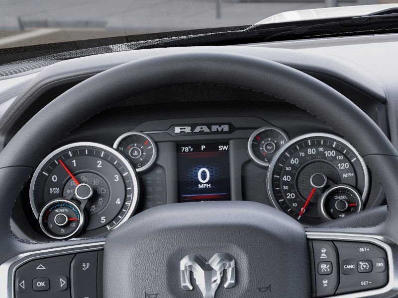 Big Horn Level 1 Plus Equipment Group (12" Touchscreen Display, 2 Way Rear Headrest Seat, 2nd Row in Floor Storage Bins, 4 Way Front Headrests, 40/20/40 Split Bench Seat, 4G LTE Wi-Fi Hot Spot, 9 Alpine Speakers with Subwoofer, Air Conditioning ATC with Dual Zone Control, Alexa Built-in, Anti-Spin Differential Rear Axle, Apple CarPlay, Auto Power-Folding Mirrors, Auto-Dimming Rear-View Mirror, Black Exterior Mirrors, Connected Travel and Traffic Services, Connectivity - US/Canada, Disassociated Touchscreen Display, Dual Glove Boxes, Emergency Vehicle Alert System (EVAS), Exterior Mirrors Courtesy Lamps, Exterior Mirrors with Heating Element, Exterior Mirrors with Supplemental Signals, Foam Bottle Insert (door Trim Panel), Folding Flat Load Floor Storage, Footwell Courtesy Lamp, For Details, Visit DriveUconnect.com, For More Info, Call 800-643-2112, Forward and Reverse Utility Lights, Front Armrest with Cupholders, Front Center Seat Cushion Storage, Front Seat Back Map Pockets, Global Telematics Box Module, Glove Box Lamp, Google Android Auto, GPS Antenna Input, GPS Navigation, HD Radio, Integrated Voice Command with Bluetooth, LED Bed Lighting, Locking Lower Glove Box, Luxury Steering Wheel, Manual Adjust 4-Way Front Passenger Seat, Mirror Running Lights, MOPAR Deployable Bed Step, MOPAR Spray in Bedliner, Off-Road Info Pages, Power 2-Way Driver Lumbar Adjust, Power Adjust 8-Way Driver Seat, Power Adjust Mirrors, Power Heated Folding Telescopic Mirrors, Power Telescoping Mirrors, Power-Adjustable Convex Aux Mirrors, Premium Cloth 40/20/40 Bench Seat, Radio: Uconnect 5 Navigation with 12.0" Display, Rear 60/40 Folding Seat, Rear Dome with on/Off Switch Lamp, Remote Start System, Remote USB Port - Charge Only, Selectable Tire Fill Alert, SiriusXM Radio Service, SiriusXM with 360L, Steering Wheel Mounted Audio Controls, Storage Tray, and Trailer Tow Pages), Quick Order Package 24Z Big Horn, Sport Appearance Package (Black Interior Accents, Body Color Grille-Surround, Painted Front Bumper, Painted Rear Bumper, and Sport Decal), 4-Wheel Disc Brakes, 5th Wheel/Gooseneck Towing Prep Group, 6 Speakers, ABS brakes, Air Conditioning, Alloy wheels, AM/FM radio: SiriusXM, Apple CarPlay/Android Auto, Brake assist, Bumpers: chrome, Center Hub, Cloth 40/20/40 Bench Seat, Compass, Delay-off headlights, Driver door bin, Dual front impact airbags, Dual front side impact airbags, Electronic Stability Control, Front anti-roll bar, Front Center Armrest w/Storage, Front fog lights, Front License Plate Bracket, Front reading lights, Fully automatic headlights, Heated door mirrors, Illuminated entry, Low tire pressure warning, Manual Adjust 4-Way Driver Seat, Occupant sensing airbag, Outside temperature display, Overhead airbag, Overhead console, Panic alarm, ParkView Rear Back-Up Camera, Passenger door bin, Price may include: $1000 - 2026 National Bonus Cash . Exp. 03/31/2026 $1,500 trade in allowance program for customers that own a 2018 or newer passenger car or truck with less than 80,000 miles and trade in their vehicle towards the purchase of a new vehicle. Some restrictions may apply. Contact dealer for details. ...Sale price includes a $2,500 conditional Ram finance discount. To qualify, customer must finance or lease through Chrysler Capital. Factory-subsidized interest rate loans are not eligible. If customer does not finance or lease through Chrysler Capital, the $2,500 finance discount will not apply and sale price will increase by $2,500. Some restrictions may apply. See dealer for d