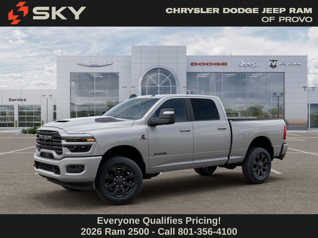 Tackle every job with confidence in the new Ram 2500, available now at Sky CDJR of Provo! As your trusted Ram truck dealer in Utah County, we know what it takes to combine strength, smarts, and style. From hauling heavy loads to heading up the canyon for a weekend escape, the 2500 is built for life in Utah. Call 801-356-4100 today and experience power that works as hard as you do! Silver Zynith 2026 Ram 2500 Laramie 4WD 8-Speed Automatic 6.7L I6 ABS brakes, Active Cruise Control, Alloy wheels, Compass, Electronic Stability Control, Front dual zone A/C, GPS Navigation, Heated door mirrors, Heated Front Seats, Heated front seats, Illuminated entry, Low tire pressure warning, ParkView Rear Back-Up Camera, Remote keyless entry, Traction control.
