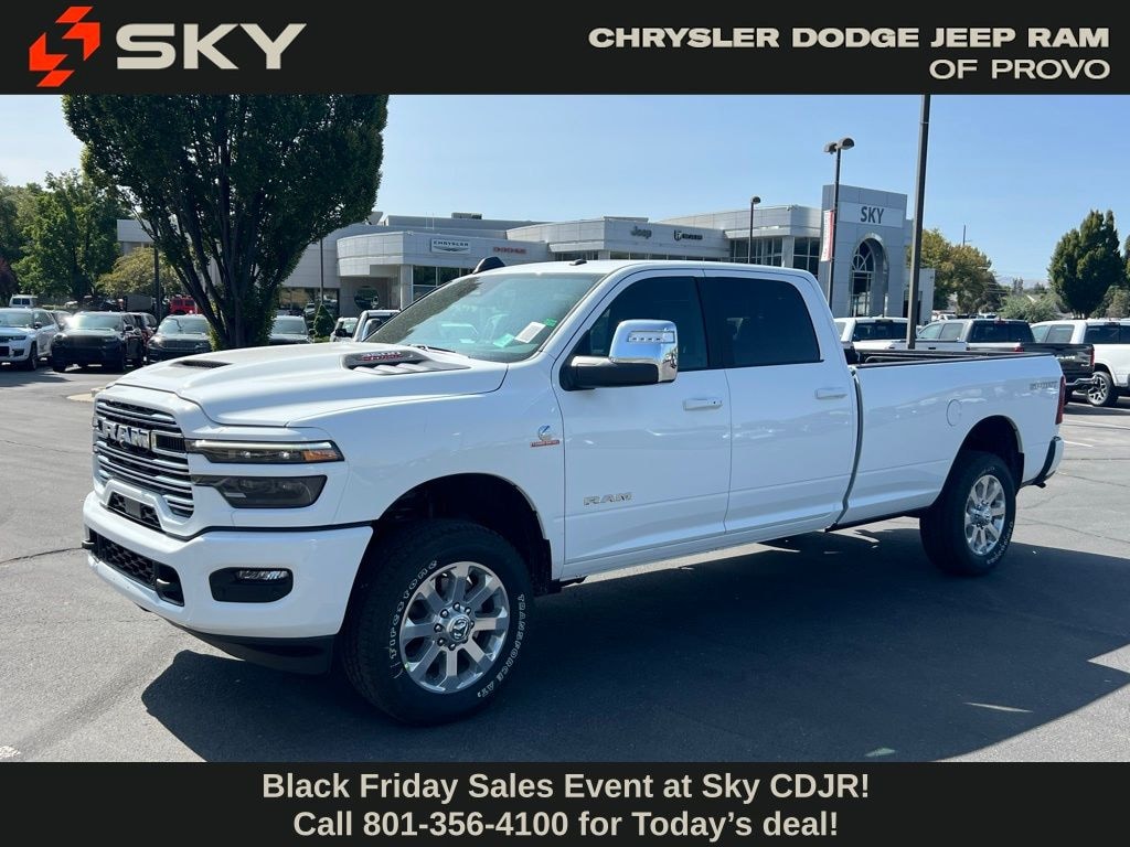Laramie Level 1 Plus Equipment Group (#1 Seat Foam Cushion, 115V Auxiliary Rear Power Outlet, 2 Way Rear Headrest Seat, 2nd Row In Floor Storage Bins, 4 Way Front Headrests, Active Lane Management System, Adaptive Steering System, Auto Adjust In Reverse Exterior Mirrors, Auto Dimming Exterior Passenger Mirror, Auto High Beam Headlamp Control, Auto Power-Folding Mirrors, Auto-Dimming Exterior Mirrors, Bucket Seats, Chrome Exterior Mirrors, CTR Stop Lamp w/Cargo View Camera, Drowsy Driver Detection, Dual Wireless Charging Pad, Exterior Mirrors Courtesy Lamps, Exterior Mirrors w/Heating Element, Exterior Mirrors w/Memory, Exterior Mirrors w/Supplemental Signals, Foam Bottle Insert (Door Trim Panel), Folding Flat Load Floor Storage, Forward & Reverse Utility Lights, Front Seat Back Map Pockets, Full Length Upgraded Floor Console, Heated Front Seats, Heated Steering Wheel, High Back Seats, Leather Trimmed Bucket Seats, LED Bed Lighting, Mirror Running Lights, MOPAR Deployable Bed Step, MOPAR Spray In Bedliner, Power 2-Way Driver Lumbar Adjust, Power 2-Way Passenger Lumbar Adjust, Power Adjust 8-Way Driver Seat, Power Adjust 8-Way Front Passenger Seat, Power Adjust Mirrors, Power Adjustable Pedals w/Memory, Power Heat Fold Memory Telescopic Mirrors, Power Telescoping Mirrors, Power-Adjustable Convex Aux Mirrors, Rain Sensitive Windshield Wipers, Rear 60/40 Folding Seat, Remote Tailgate Release, and Traffic Sign Recognition), Quick Order Package 24H Laramie, Sport Appearance Package (Body Color Grille Surround, Sport Decal, and Sport Performance Hood), 10 Speakers, 20" x 8.0" Polished Aluminum Wheels, 4-Wheel Disc Brakes, 4G LTE Wi-Fi Hot Spot, 50 Gallon Fuel Tank, ABS brakes, Air Conditioning, Alexa Built-In, Alloy wheels, AM/FM radio: SiriusXM with 360L, Apple CarPlay, Apple CarPlay/Android Auto, Auto-dimming Rear-View mirror, Automatic temperature control, Black Wheel Center Hub, Brake assist, Bumpers: body-color, Center Hub, Compass, Connected Travel & Traffic Services, Connectivity - US/Canada, Delay-off headlights, Disassociated Touchscreen Display, Driver door bin, Driver vanity mirror, Dual front impact airbags, Dual front side impact airbags, Electronic Stability Control, Emergency Vehicle Alert System (EVAS), Front anti-roll bar, Front Center Armrest w/Storage, Front dual zone A/C, Front fog lights, Front License Plate Bracket, Front reading lights, Fully automatic headlights, Garage door transmitter, Global Telematics Box Module (TBM), Google Android Auto, GPS Antenna Input, GPS Navigation, HD Radio, Heated door mirrors, Heated front seats, Heated steering wheel, Illuminated entry, Integrated Voice Command w/Bluetooth, Leather Trim 40/20/40 Bench Seat, Low tire pressure warning, MOPAR Front & Rear Rubber Floor Mats, Navigation System, Occupant sensing airbag, Off-Road Information Pages, Outside temperature display, Overhead airbag, Overhead console, Panic alarm, ParkView Rear Back-Up Camera, Passenger door bin, Passenger vanity mirror, Power door mirrors, Power driver seat, Power passenger seat, Power steering, Power Sunroof, Price may include: $1000 - 2026 National Bonus Cash . Exp. 12/01/2025 $1,500 trade in allowance program for customers that own a 2018 or newer passenger car or truck with less than 80,000 miles and trade in their vehicle towards the purchase of a new vehicle. Some restrictions may apply. Contact dealer for details. $1,000 Down Payment Assistance. Must Finance with CCAP. May not be combined with some factory incentives. Contact dealer for d