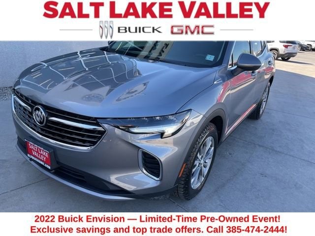 Take your drives to the next level with this Buick Envision from Salt Lake Valley Buick GMC! Engineered for a smooth ride, advanced convenience, and lasting dependability, this vehicle is ready to handle everything your day throws at you. Price excludes tax, title, license fee, government fees, and $449 dealer documentary service fee. While every reasonable effort is made to ensure accuracy, we are not responsible for errors or omissions, and vehicles may be sold prior to inquiry please contact the dealer to confirm availability. All financing is subject to approved credit. Looking for quality used cars in Salt Lake City? This Buick Envision delivers style, versatility, and value - perfect for daily commutes, family trips, or weekend adventures. Stop by Salt Lake Valley Buick GMC to see this vehicle in person and explore our wide selection of pre-owned cars, trucks, and SUVs. Browse online at www.slvbuickgmc.com or call 801-265-1511 to schedule your test drive today! With Comfort & Convenience Package (7-Speaker Audio System Feature w/Amplifier, Air Quality Indicator Sensor, Automatic Air Circulation/Air Quality Sensor, Dual-Zone ACC Air Conditioning, Hands Free Power Programmable Liftgate, Heated Driver & Front Passenger Seats, Heated Steering Wheel, Radio: Buick Infotainment System AM/FM Stereo, Remote Vehicle Starter System, SiriusXM Radio, and Wireless Apple CarPlay/Wireless Android Auto), Preferred Equipment Group 1SC, Safety Package (Lane Change Alert w/Side Blind Zone Alert and Rear Cross Traffic Alert), 3.47 Final Drive Axle Ratio, 4-Wheel Disc Brakes, 6 Speakers, 6-Speaker Audio System Feature, 8-Way Power Driver Seat Adjuster, ABS brakes, Air Conditioning, Alloy wheels, AM/FM radio: SiriusXM, Apple CarPlay/Android Auto, Auto High-beam Headlights, Auto-dimming door mirrors, Auto-dimming Rear-View mirror, Brake assist, Bumpers: body-color, Cloth w/Leatherette Seat Trim, Compass, Delay-off headlights, Driver door bin, Driver vanity mirror, Dual front impact airbags, Dual front side impact airbags, Electronic Stability Control, Emergency communication system: OnStar and Buick connected services capable, Four wheel independent suspension, Front anti-roll bar, Front Bin Center Console USB Ports, Front Bucket Seats, Front Center Armrest, Front Passenger 6-Way Manual Seat Adjuster, Front reading lights, Fully automatic headlights, Heated door mirrors, Illuminated entry, Knee airbag, Low tire pressure warning, Not Equipped w/Driver & Fr Passenger Heated Seats, Not Equipped w/Rear Park Assist, Occupant sensing airbag, Outside temperature display, Overhead airbag, Overhead console, Panic alarm, Passenger door bin, Passenger vanity mirror, Power door mirrors, Power driver seat, Power steering, Power windows, Premium audio system: Buick Infotainment System, Radio data system, Radio: 8 Diagonal Buick Infotainment System, Rear anti-roll bar, Rear reading lights, Rear seat center armrest, Rear window defroster, Rear window wiper, Remote keyless entry, Roof rack: rails only, Security system, Speed control, Split folding rear seat, Spoiler, Steering wheel mounted audio controls, Telescoping steering wheel, Tilt steering wheel, Traction control, Trip computer, USB Charging-Only Ports, Variably intermittent wipers, and Wheels: 18 Aluminum w/Light Charcoal Met Finish designed for convenience and enjoyment, this Buick Envision is ready to take you wherever you want to go.