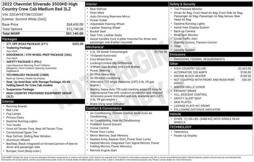 Take your drives to the next level with this Chevrolet Silverado 3500HD from Salt Lake Valley Buick GMC! Engineered for a smooth ride, advanced convenience, and lasting dependability, this vehicle is ready to handle everything your day throws at you. Plus, enjoy a $1,000 finance savings, already included in the sale price, when you finance through one of our trusted lending partners. Looking for quality used cars in Salt Lake City? This Chevrolet Silverado 3500HD delivers style, versatility, and value - perfect for daily commutes, family trips, or weekend adventures. Stop by Salt Lake Valley Buick GMC to see this vehicle in person and explore our wide selection of pre-owned cars, trucks, and SUVs. Browse online at www.slvbuickgmc.com or call 801-265-1511 to schedule your test drive today! With Gooseneck/5th Wheel Prep Package, High Country Deluxe, Preferred Equipment Group 3LZ (12-Volt Rear Auxiliary Power Outlet, 120-Volt Bed Mounted Power Outlet, 120-Volt Instrument Panel Power Outlet, 170 Amp Alternator, 2nd Row Dual USB Charge-Only Ports, 6 Rectangular Chromed Tubular Assist Steps, 8 Driver Information Center, Advanced Trailering System, Auto-Dimming Inside Rear-View Mirror, Bed View Camera w/2 Trailer Camera Provisions, Bluetooth® For Phone, Chevrolet Connected Access Capable, Chevytec Spray-On Black Bedliner w/Chevrolet Logo, Chrome Front Grille Bar w/Chrome Grille Inserts, Chrome Mirror Caps, Color-Keyed Carpeting Floor Covering, Compass Located In Instrument Cluster, Deep-Tinted Glass, Electric Rear-Window Defogger, Electrical Lock Control Steering Column, Front Carpeted Floor Mats, Front Chrome Recovery Hooks, Front LED Fog Lamps, HD Surround Vision w/2 Trailer View Camera Provisions, Heated Steering Wheel, Hitch Guidance w/Hitch View, Integrated Trailer Brake Controller, Keyless Open & Start, Lane Change Alert w/Side Blind Zone Alert, Leather-Wrapped Steering Wheel, LED Cargo Area Lighting, Manual Tilt/Telescoping Steering Column, OnStar & Chevrolet Connected Services Capable, Polished Exhaust Tip, Power Door Locks, Power Front Passenger Windows w/Express Up/Down, Power Front Windows w/Driver Express Up/Down, Power Rear Windows w/Express Down, Power Sliding Rear Window w/Defogger, Power-Adjustable Outside Mirrors, Rear Carpeted Floor Mats, Rear Cross Traffic Alert, Rear Wheelhouse Liners, Remote Vehicle Starter System, SiriusXM w/360L, Standard Tailgate, Steering Wheel Audio Controls, Steering Wheel Mounted Electronic Cruise Control, Unauthorized Entry Theft-Deterrent System, Universal Home Remote, Wi-Fi Hotspot Capable, Wireless Charging, and Wireless Phone Projection), Safety Package II (Automatic Emergency Braking, Following Distance Indicator, Forward Collision Alert, IntelliBeam Automatic High Beam On/Off, Lane Departure Warning System, and Safety Alert Seat), Suspension Package, Technology Package (Auto-Dimming Inside Rearview Mirror w/Camera and Multicolor 15 Diagonal Head-Up Display), Up-Level Rear Seat w/Storage Package, Z71 Off-Road Package (Hill Descent Control), 10-Way Power Driver Seat Adjuster w/Lumbar, 10-Way Power Passenger Seat Adjuster w/Lumbar, 220 Amp Alternator, 4-Wheel Disc Brakes, 7 Speakers, ABS brakes, Air Conditioning, Alloy wheels, AM/FM radio: SiriusXM with 360L, Apple CarPlay/Android Auto, Auto-dimming door mirrors, Auto-dimming Rear-View mirror, Automatic temperature control, Bose Premium 7 Speaker Sound System, Brake assist, Bumpers: body-color, Compass, Delay-off headlights, Driver door bin, Driver Memory, Driver vanity mirror, Dual front impact airbags, Dual front side impact airbags, Durabed Pickup Bed, Electronic Stability Control, Engine Block Heater, Exhaust Brake, Floor-Mounted Center Console, Front anti-roll bar, Front Bucket Seats, Front Center Armrest, Front dual zone A/C, Front fog lights, Front License Plate Kit, Front reading lights, Front wheel independent suspension, Fully automatic headlights, Garage door transmitter, Heated 2nd Row Outboard Seats, Heated door mirror