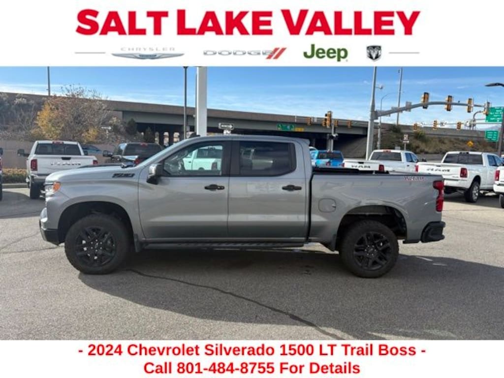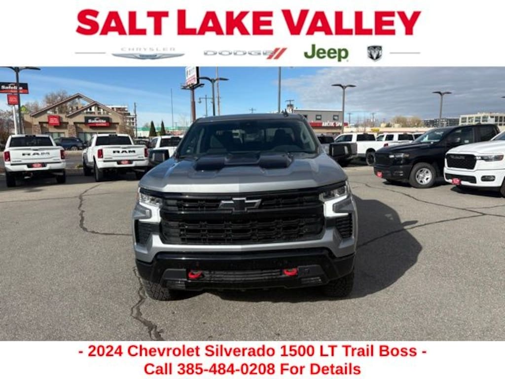 Get ready to hit the road in this Chevrolet Silverado 1500, a standout choice for drivers looking for reliability, performance, and style! This impressive vehicle is packed with premium features designed to make every drive more enjoyable. Plus, youâll enjoy a $1,000 finance savings, already included in the sale price, when you finance through one of our trusted lending partners. Whether youâre searching for used cars in Salt Lake City, a dependable SUV, or a powerful truck, this Chevrolet Silverado 1500 delivers everything you need and more. Visit Salt Lake Valley Chrysler Dodge Jeep Ram today to test drive or explore our entire selection of quality pre-owned vehicles. Donât wait - shop online at www.slvcdjr.com or call 801-484-8755 to learn more! This amazing vehicle comes loaded with options like Convenience Package (10-Way Power Driver Seat w/Lumbar, 120-Volt Bed Mounted Power Outlet, 120-Volt Interior Power Outlet, Dual Rear USB Ports (Charge Only), Dual-Zone Automatic Climate Control, Electric Rear-Window Defogger, Heated Driver & Front Outboard Passenger Seats, Heated Steering Wheel, Keyless Open & Start, Remote Vehicle Starter System, Theft Deterrent System (Unauthorized Entry), and Wrapped Steering Wheel), Convenience Package II (Hitch Guidance w/Hitch View, In-Vehicle Trailering System App, Integrated Trailer Brake Controller, Power Sliding Rear Window w/Rear Defogger, Premium Bose 7-Speaker Sound System, and Universal Home Remote), Dark Essentials Package (LPO) (Black Name Plates (LPO)), Preferred Equipment Group 2LT (12.3" Multicolor Reconfigurable Digital Display, 6-Speaker Audio System, All-Weather Floor Liner (LPO) (AAK), Auto-Locking Rear Differential, Bluetooth® For Phone, Chevrolet Connected Access Capable, Color-Keyed Carpeting Floor Covering, Deep-Tinted Glass, Electrical Steering Column Lock, Electronic Cruise Control, EZ Lift Power Lock & Release Tailgate, Front LED Fog Lamps, HD Rear Vision Camera, Heated Power-Adjustable Outside Mirrors, High Gloss Black Mirror Caps, Inside Rear-View Mirror w/Tilt, LED Cargo Area Lighting, OnStar & Chevrolet Connected Services Capable, Performance Red Recovery Hooks, Power Front Windows w/Driver Express Up/Down, Power Front Windows w/Passenger Express Down, Power Rear Windows w/Express Down, Rear 60/40 Folding Bench Seat (Folds Up), SiriusXM w/360L, Standard Tailgate, Steering Wheel Audio Controls, and Wi-Fi Hot Spot Capable), Safety Package (HD Surround Vision, Perimeter Lighting, Rear Cross Traffic Braking, Rear Pedestrian Alert, Trailer Camera Provisions, Trailer Side Blind Zone Alert, and Ultrasonic Front & Rear Park Assist), Suspension Package (Heavy-Duty Air Filter and Hill Descent Control), Trailering Package (Hitch Guidance), 2 USB Data Ports, 220 Amp Alternator, 4-Wheel Disc Brakes, 40/20/40 Front Split-Bench Seat, 6 Speakers, ABS brakes, Air Conditioning, Alloy wheels, AM/FM radio: SiriusXM with 360L, Auto High-beam Headlights, Automatic Emergency Braking, Automatic temperature control, Black Tailgate CHEVROLET Lettering (LPO), Brake assist, Cloth Seat Trim, Compass, Delay-off headlights, Driver door bin, Driver vanity mirror, Dual Exhaust w/Polished Outlets, Dual front impact airbags, Dual front side impact airbags, Electronic Stability Control, Electronic Transmission Range Selector Shifter, Engine Block Heater, Floor Mounted Center Console, Following Distance Indicator, Forward Collision Alert, Front anti-roll bar, Front Bucket Seats, Front Center Armrest w/Storage, Front dual zone A/C, Front fog lights, Front License Plate Kit, Front Pedestrian Braking, Front reading lights, Front wheel independent suspension, Fully automatic headlights, Heated door mirrors, Heated front seats, Heated steering wheel, Illuminated entry, IntelliBeam Automatic High Beam On/Off, Lane Keep Assist w/Lane Departure Warning, Low tire pressure warning, Occupant sensing airbag, Off-Road High Clearance Steps (LPO), Outside temperature display, Overhead airbag, Overhead console