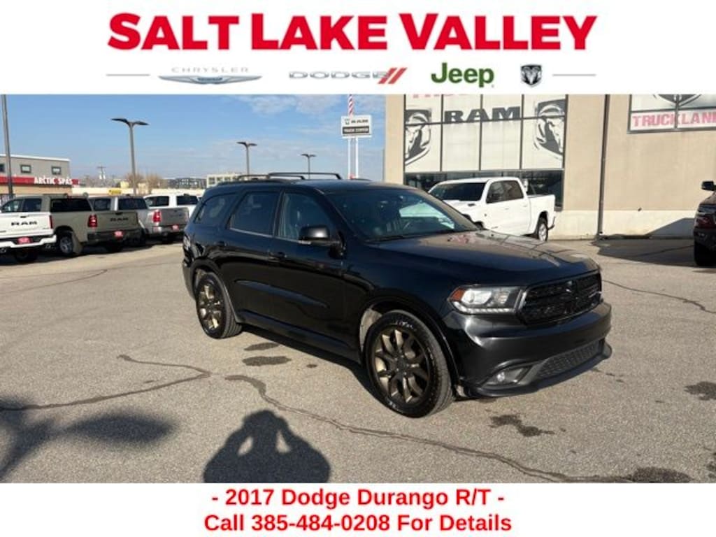Get ready to hit the road in this Dodge Durango, a standout choice for drivers looking for reliability, performance, and style! This impressive vehicle is packed with premium features designed to make every drive more enjoyable. Plus, youâll enjoy a $1,000 finance savings, already included in the sale price, when you finance through one of our trusted lending partners. Whether youâre searching for used cars in Salt Lake City, a dependable SUV, or a powerful truck, this Dodge Durango delivers everything you need and more. Visit Salt Lake Valley Chrysler Dodge Jeep Ram today to test drive or explore our entire selection of quality pre-owned vehicles. Donât wait - shop online at www.slvcdjr.com or call 801-484-8755 to learn more! This amazing vehicle comes loaded with options like Brass Monkey Appearance Package (Gloss Black Badges, Gloss Black Grille, and Wheels: 20" x 8.0" Brass Monkey), Cargo Plus Group (Cargo Compartment Cover and Integrated Roof Rail Crossbars), Quick Order Package 25S, Trailer Tow Group IV (7 & 4 Pin Wiring Harness, Class IV Receiver Hitch, Heavy-Duty Engine Cooling, and Rear Load Leveling Suspension), 10 Speakers, 2nd Row Mini Console w/Cupholders, 2nd Row Seat Mounted Inboard Armrests, 3.09 Rear Axle Ratio, 3rd Row Floor Mat & Mini Console, 3rd row seats: split-bench, 4-Wheel Disc Brakes, ABS brakes, Air Conditioning, Alloy wheels, AM/FM radio: SiriusXM, Anti-whiplash front head restraints, Audio memory, Auto-dimming door mirrors, Auto-dimming Rear-View mirror, Auto-leveling suspension, Automatic temperature control, Black Roof Rails (DISC), Brake assist, Bumpers: body-color, Compass, Delay-off headlights, Driver door bin, Driver vanity mirror, Dual front impact airbags, Dual front side impact airbags, Dual Rear Exhaust w/Bright Tips, Electronic Stability Control, Emergency communication system: Uconnect Access, Exterior Parking Camera Rear, Four wheel independent suspension, Front anti-roll bar, Front Bucket Seats, Front Center Armrest w/Storage, Front dual zone A/C, Front fog lights, Front reading lights, Fully automatic headlights, Garage door transmitter, Heated door mirrors, Heated front seats, Heated rear seats, Heated steering wheel, High-Intensity Discharge Headlights, Illuminated entry, Knee airbag, Low tire pressure warning, Lux Leather Trimmed Bucket Seats, Manufacturer's Statement of Origin, Memory seat, Navigation system: Garmin, Occupant sensing airbag, Outside temperature display, Overhead airbag, Overhead console, Panic alarm, Passenger door bin, Passenger vanity mirror, Power 8-Way Driver Memory 8-Way Passenger Seats, Power door mirrors, Power driver seat, Power Liftgate, Power passenger seat, Power steering, Power windows, Radio data system, Radio: Uconnect 3C Nav w/8.4" Display, Rear air conditioning, Rear anti-roll bar, Rear reading lights, Rear seat center armrest, Rear window defroster, Rear window wiper, Remote keyless entry, Security system, Speed control, Speed-Sensitive Wipers, Split folding rear seat, Spoiler, Steering wheel mounted audio controls, Tachometer, Telescoping steering wheel, Tilt steering wheel, Traction control, Trip computer, Turn signal indicator mirrors, Variably intermittent wipers, Ventilated front seats, and Wheels: 20" x 8.0" Low Gloss Granite Crystal, making it the perfect choice for your next adventure. Priced below KBB Fair Purchase Price!