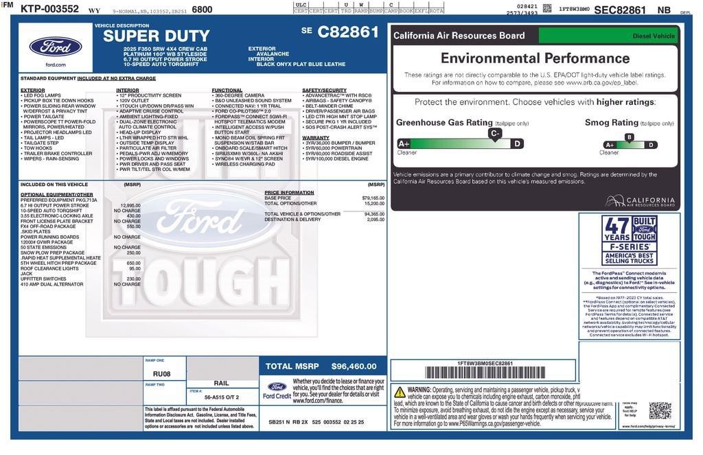 Avalanche 2025 Ford F-350SD Platinum 4WD 10-Speed Automatic 6.7L High Output Power Stroke V8 Diesel 4WD.