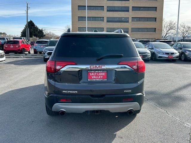Turn every drive into something special with this GMC Acadia from Salt Lake Valley Chevrolet! Designed for comfort, performance, and style, this vehicle comes fully equipped with modern technology and convenience features youâll love. Plus, enjoy a $1,000 finance savings, already included in the sale price, when you finance through one of our trusted lending partners. If youâre shopping for used cars in Salt Lake City, or searching for the perfect SUV, truck, or sedan, this GMC Acadia delivers the dependability and value youâre looking for. Itâs the ideal match for your lifestyle - ready for everything from mountain adventures to city commutes. Visit Salt Lake Valley Chevrolet today and see why so many Utah drivers trust us for great deals on quality pre-owned vehicles. Explore our inventory online at www.slvchevy.com or call 801-969-8221 to schedule your test drive today! This impressive vehicle includes Preferred Equipment Group 4SA, Trailering Package (Heavy Duty Cooling System), 155 Amp Alternator, 170 Amp Alternator, 18 x 7.5 Aluminum (4) Wheels, 3.16 Axle Ratio, 3rd row seats: split-bench, 4-Wheel Disc Brakes, 6-Passenger (2-2-2 Seating Configuration), 7-Passenger (2-3-2 Seating Configuration), 8 Speakers, ABS brakes, Air Conditioning, Alloy wheels, AM/FM radio: SiriusXM, Apple CarPlay/Android Auto, Auto-dimming door mirrors, Auto-dimming Rear-View mirror, Automatic temperature control, Brake assist, Bumpers: body-color, Compass, Delay-off headlights, Driver door bin, Driver vanity mirror, Dual front impact airbags, Dual front side impact airbags, Electronic Stability Control, Emergency communication system: OnStar Guidance, Exterior Parking Camera Rear, Four wheel independent suspension, Front anti-roll bar, Front Bucket Seats, Front Center Armrest, Front dual zone A/C, Front fog lights, Front License Plate Bracket, Front reading lights, Fully automatic headlights, Garage door transmitter, Heated door mirrors, Heated front seats, Illuminated entry, Knee airbag, Low tire pressure warning, Occupant sensing airbag, Outside temperature display, Overhead airbag, Overhead console, Panic alarm, Passenger door bin, Passenger vanity mirror, Perforated Leather-Appointed Seat Trim, Power door mirrors, Power driver seat, Power Liftgate, Power passenger seat, Power steering, Power windows, Premium audio system: IntelliLink, Radio data system, Radio: AM/FM 8 Diagonal Color Touch Screen, Rear air conditioning, Rear anti-roll bar, Rear reading lights, Rear window defroster, Rear window wiper, Remote keyless entry, Roof rack: rails only, Security system, SiriusXM Satellite Radio, Speed control, Speed-sensing steering, Spoiler, Steering wheel mounted audio controls, Tachometer, Telescoping steering wheel, Tilt steering wheel, Traction control, Trip computer, Variably intermittent wipers, and Voltmeter, offering everything you need for your next adventure.Clean CARFAX.Awards:* 2017 IIHS Top Safety Pick with optional front crash prevention * 2017 KBB.com Brand Image Awards