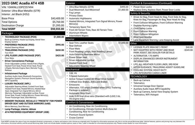 Take your drives to the next level with this GMC Acadia from Salt Lake Valley Buick GMC! Engineered for a smooth ride, advanced convenience, and lasting dependability, this vehicle is ready to handle everything your day throws at you. Price excludes tax, title, license fee, government fees, and $449 dealer documentary service fee. While every reasonable effort is made to ensure accuracy, we are not responsible for errors or omissions, and vehicles may be sold prior to inquiry please contact the dealer to confirm availability. All financing is subject to approved credit. Looking for quality used cars in Salt Lake City? This GMC Acadia delivers style, versatility, and value - perfect for daily commutes, family trips, or weekend adventures. Stop by Salt Lake Valley Buick GMC to see this vehicle in person and explore our wide selection of pre-owned cars, trucks, and SUVs. Browse online at www.slvbuickgmc.com or call 801-265-1511 to schedule your test drive today! With Floor Liner Package (LPO) (1st & 2nd Row All-Weather Floor Liner (LPO), 3rd Row All-Weather Floor Liner (LPO), and Integrated Cargo Liner (LPO)), Luxury Package (8-Way Power Passenger Seat Adjuster, Heated & Ventilated Driver & Front Passenger Seats, Heated Rear Outboard Seating Positions, Power Passenger Lumbar Control Seat Adjuster, Power Tilt & Telescopic Steering Column, and Power-Adjustable Body-Color Outside Heated Mirrors), Memory Package, Preferred Equipment Group 4SB, Preferred Package (Heated Steering Wheel), Technology Package (8 Multi-Color Enhanced Dr Instrument Info Display, HD Surround Vision, and Heads-Up Display), Trailering Package (170 Amp Alternator, Heavy-Duty Cooling System, Hitch Guidance w/Hitch View, and Trailering Assist Guidelines), 3.49 Final Drive Axle Ratio, 3rd row seats: split-bench, 4-Way Manual Passenger Seat Adjuster, 4-Wheel Disc Brakes, 6-Passenger (2-2-2 Seating Configuration), 8 Speakers, 8-Way Power Driver Seat Adjuster, ABS brakes, Air Conditioning, Alloy wheels, AM/FM radio: SiriusXM with 360L, Apple CarPlay/Android Auto, Auto High-beam Headlights, Auto-dimming Rear-View mirror, Automatic temperature control, Bose Premium 8-Speaker Audio System Feature, Brake assist, Bumpers: body-color, Compass, Delay-off headlights, Driver door bin, Driver vanity mirror, Dual front impact airbags, Dual front side impact airbags, Dual SkyScape 2-Panel Power Sunroof, Electronic Stability Control, Emergency communication system: OnStar and GMC connected services capable, Four wheel independent suspension, Front anti-roll bar, Front Bucket Seats, Front Center Armrest, Front dual zone A/C, Front fog lights, Front License Plate Bracket, Front reading lights, Fully automatic headlights, Garage door transmitter, Heated door mirrors, Heated Driver & Front Passenger Seats, Heated front seats, Illuminated entry, Knee airbag, Low tire pressure warning, Navigation System, Not Equipped w/Front & Rear Park Assist (060), Occupant sensing airbag, Outside temperature display, Overhead airbag, Overhead console, Panic alarm, Passenger door bin, Passenger vanity mirror, Power door mirrors, Power Driver Lumbar Control Seat Adjuster, Power driver seat, Power Liftgate, Power steering, Power windows, Premium Cloth Seat Trim, Radio data system, Radio: AM/FM 8 Diagonal Multi-Touch Navigation, Rear air conditioning, Rear anti-roll bar, Rear reading lights, Rear window defroster, Rear window wiper, Remote keyless entry, Roof rack: rails only, Security system, SiriusXM w/360L, Speed control, Speed-sensing steering, Spoiler, Steering wheel mounted audio controls, Tachometer, Telescoping steering wheel, Tilt steering wheel, Traction control, Trip computer, Turn signal indicator mirrors, Variably intermittent wipers, Voltmeter, Wheels: 17 Gloss Black Aluminum, and Wireless Apple CarPlay/Wireless Android Auto designed for convenience and enjoyment, this GMC Acadia is ready to take you wherever you want to go.