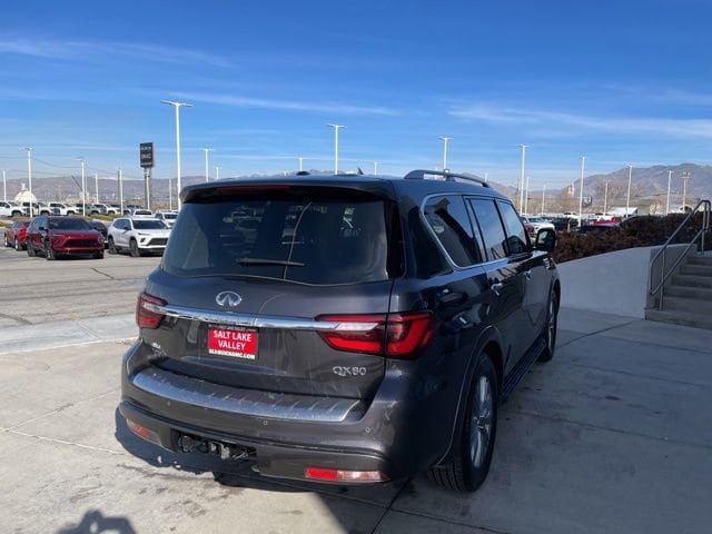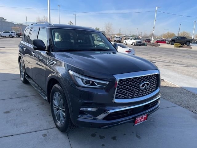 Take your drives to the next level with this INFINITI QX80 from Salt Lake Valley Buick GMC! Engineered for a smooth ride, advanced convenience, and lasting dependability, this vehicle is ready to handle everything your day throws at you. Plus, enjoy a $1,000 finance savings, already included in the sale price, when you finance through one of our trusted lending partners. Looking for quality used cars in Salt Lake City? This INFINITI QX80 delivers style, versatility, and value - perfect for daily commutes, family trips, or weekend adventures. Stop by Salt Lake Valley Buick GMC to see this vehicle in person and explore our wide selection of pre-owned cars, trucks, and SUVs. Browse online at www.slvbuickgmc.com or call 801-265-1511 to schedule your test drive today! With 13 Speakers, 2.937 Axle Ratio, 20 Aluminum Alloy Wheels, 3rd row seats: bench, 4-Wheel Disc Brakes, ABS brakes, Air Conditioning, Alloy wheels, AM/FM radio: SiriusXM, Anti-whiplash front head restraints, Apple CarPlay/Android Auto, Auto High-beam Headlights, Auto tilt-away steering wheel, Auto-dimming door mirrors, Auto-dimming Rear-View mirror, Auto-leveling suspension, Automatic temperature control, Brake assist, Bumpers: body-color, Compass, Delay-off headlights, Driver door bin, Driver vanity mirror, Dual front impact airbags, Dual front side impact airbags, Electronic Stability Control, Emergency communication system: INFINITI InTouch, Four wheel independent suspension, Front anti-roll bar, Front Bucket Seats, Front Center Armrest, Front dual zone A/C, Front fog lights, Front reading lights, Fully automatic headlights, Garage door transmitter: HomeLink, Heated door mirrors, Heated Front Bucket Seats, Heated front seats, Heated steering wheel, Illuminated entry, Leather Shift Knob, Leather steering wheel, Leather-Appointed Seats, Literature Kit, Low tire pressure warning, Memory seat, Navigation system: INFINITI InTouch Navigation, Occupant sensing airbag, Outside temperature display, Overhead airbag, Overhead console, Panic alarm, Passenger door bin, Passenger vanity mirror, Power door mirrors, Power driver seat, Power Liftgate, Power moonroof, Power passenger seat, Power steering, Power windows, Radio data system, Radio: Bose Premium Audio System w/13 Speakers, Rain sensing wipers, Rear air conditioning, Rear anti-roll bar, Rear reading lights, Rear seat center armrest, Rear window defroster, Rear window wiper, Reclining 3rd row seat, Remote keyless entry, Security system, Speed control, Speed-sensing steering, Split folding rear seat, Spoiler, Steering wheel memory, Steering wheel mounted audio controls, Tachometer, Telescoping steering wheel, Tilt steering wheel, Traction control, Trip computer, Turn signal indicator mirrors, Variably intermittent wipers, and Voltmeter designed for convenience and enjoyment, this INFINITI QX80 is ready to take you wherever you want to go.