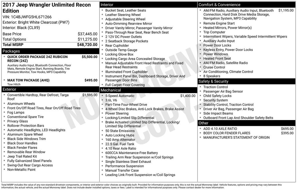 2017 Jeep Wrangler Unlimited Rubicon Recon