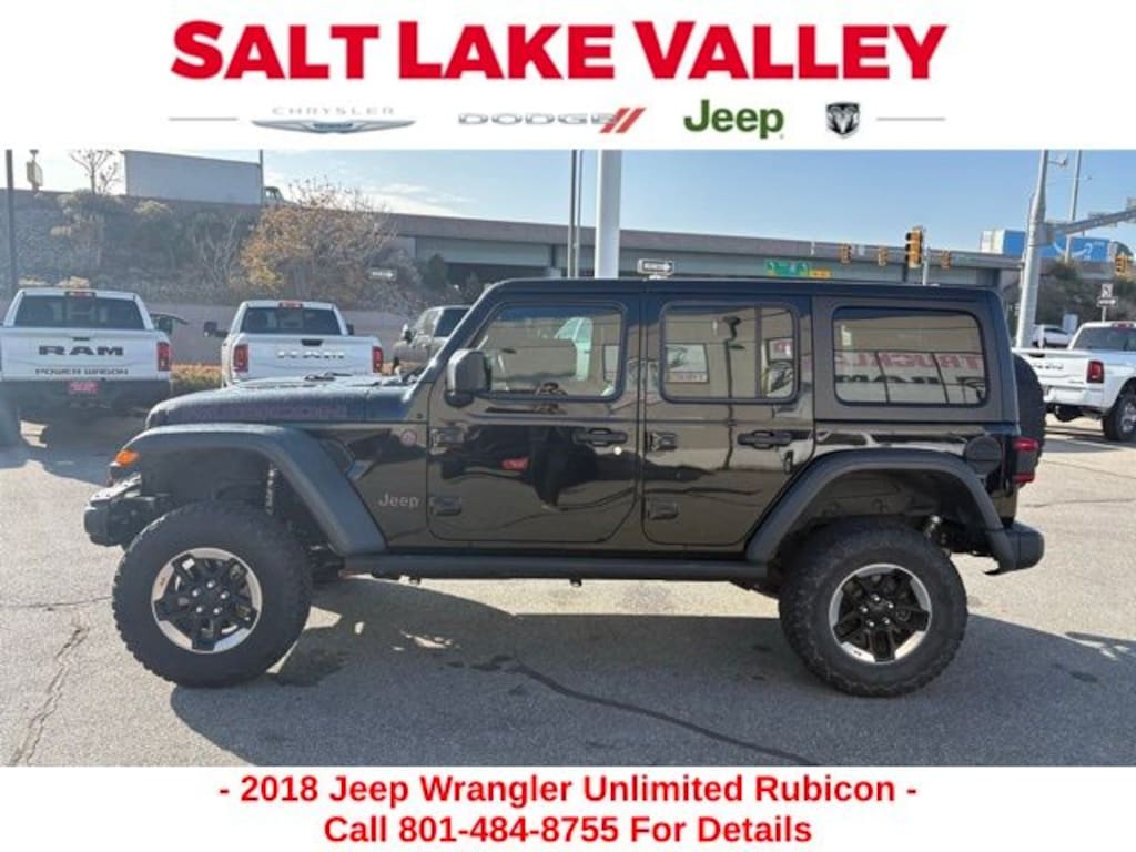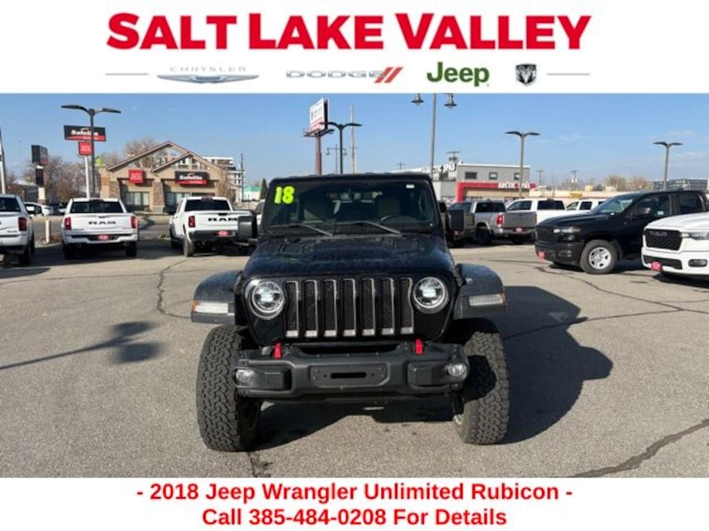 Get ready to hit the road in this Jeep Wrangler, a standout choice for drivers looking for reliability, performance, and style! This impressive vehicle is packed with premium features designed to make every drive more enjoyable. Plus, youâll enjoy a $1,000 finance savings, already included in the sale price, when you finance through one of our trusted lending partners. Whether youâre searching for used cars in Salt Lake City, a dependable SUV, or a powerful truck, this Jeep Wrangler delivers everything you need and more. Visit Salt Lake Valley Chrysler Dodge Jeep Ram today to test drive or explore our entire selection of quality pre-owned vehicles. Donât wait - shop online at www.slvcdjr.com or call 801-484-8755 to learn more! This amazing vehicle comes loaded with options like Electronic Infotainment System Group (1-Year SiriusXM Guardian Trial, 5-Year SiriusXM Traffic Service, 5-Year SiriusXM Travel Link Service, 8.4" Touchscreen Display, Alpine Premium Audio System, Auto-Dimming Rear-View Mirror, GPS Navigation, HD Radio, Radio: Uconnect 4C Nav w/8.4" Display, Roadside Assistance & 9-1-1 Call, SiriusXM Traffic Plus, and SiriusXM Travel Link), LED Lighting Group (Daytime Running Lamps LED Accents, Front LED Fog Lamps, LED Reflector Headlamps, and LED Taillamps), Quick Order Package 24R, Safety Group (Blind Spot & Cross Path Detection and ParkSense Rear Park Assist System), Steel Bumper Group (Steel Front Bumper and Steel Rear Bumper), Trailer Tow & HD Electrical Group (240 Amp Alternator, 7 & 4 Pin Wiring Harness, 700 Amp Maintenance Free Battery, Auxiliary Switches, and Class II Receiver Hitch), 21.5 Gallon Fuel Tank (DISC), 4-Wheel Disc Brakes, 4.10 Rear Axle Ratio, 8 Speakers, ABS brakes, Air Conditioning, Alloy wheels, AM/FM radio: SiriusXM, Apple CarPlay/Android Auto, Automatic temperature control, Black 3-Piece Hard Top, Brake assist, Compass, Delay-off headlights, Driver door bin, Driver vanity mirror, Dual front impact airbags, Dual front side impact airbags, Electronic Stability Control, Freedom Panel Storage Bag, Front anti-roll bar, Front Bucket Seats, Front Center Armrest w/Storage, Front dual zone A/C, Front fog lights, Front reading lights, Fully automatic headlights, Garage door transmitter, Heated door mirrors, Illuminated entry, Integrated roll-over protection, Jeep Trail Rated Kit, Leather steering wheel, Low tire pressure warning, Manufacturer's Statement of Origin (DISC), MOPAR Hardtop Headliner, Non-Lock Fuel Cap w/o Discriminator, Occupant sensing airbag, Outside temperature display, Panic alarm, ParkView Rear Back-Up Camera, Passenger door bin, Passenger vanity mirror, Performance Suspension, Power door mirrors, Power steering, Power windows, Premium Cloth Low-Back Bucket Seats, Radio data system, Radio: Uconnect 4 w/7" Display, Rear anti-roll bar, Rear reading lights, Rear Window Defroster, Rear Window Wiper/Washer, Remote keyless entry, Remote Start System, Security system, Speed control, Split folding rear seat, Steering wheel mounted audio controls, Tachometer, Telescoping steering wheel, Tilt steering wheel, Traction control, Trip computer, Variably intermittent wipers, Voltmeter, Wheels: 17" x 7.5" Black w/Polished Lip, and Wheels: 17" x 7.5" Polished w/Black Pockets, making it the perfect choice for your next adventure.
