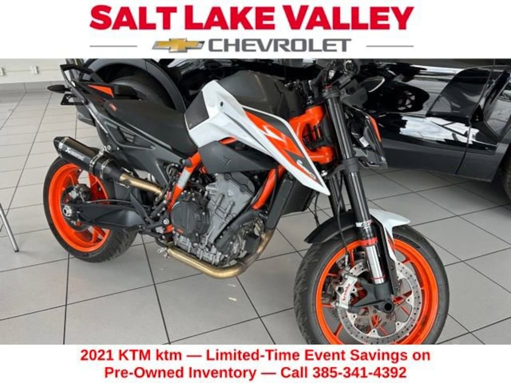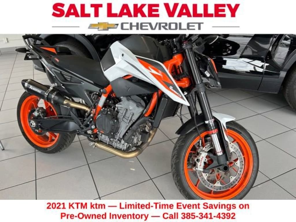 Experience the thrill of the 2021 KTM Duke 890R at Salt Lake Valley Chevrolet. Powered by an 890cc parallel-twin engine, this sport bike delivers impressive acceleration, agile handling, and an exhilarating ride. Its lightweight chassis, advanced suspension, and high-quality components make it ideal for both spirited rides and everyday use.