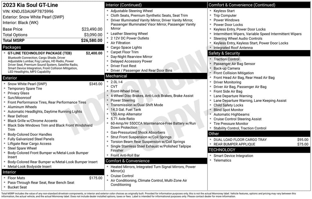 * The advertised price does not include sales tax, vehicle registration fees, other fees required by law, finance charges and any documentation charges. A negotiable administration fee, up to $115, may be added to the price of the vehicle.