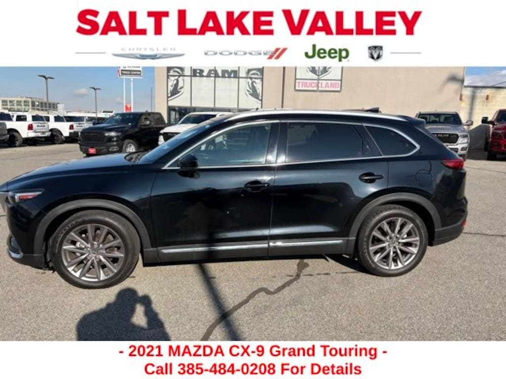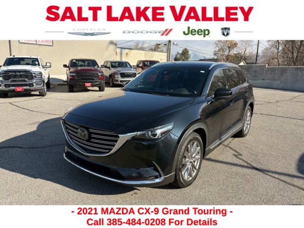 Get ready to hit the road in this Mazda CX-9, a standout choice for drivers looking for reliability, performance, and style! This impressive vehicle is packed with premium features designed to make every drive more enjoyable. Plus, youâll enjoy a $1,000 finance savings, already included in the sale price, when you finance through one of our trusted lending partners. Whether youâre searching for used cars in Salt Lake City, a dependable SUV, or a powerful truck, this Mazda CX-9 delivers everything you need and more. Visit Salt Lake Valley Chrysler Dodge Jeep Ram today to test drive or explore our entire selection of quality pre-owned vehicles. Donât wait - shop online at www.slvcdjr.com or call 801-484-8755 to learn more! This amazing vehicle comes loaded with options like 12 Speakers, 3rd row seats: bench, 4-Wheel Disc Brakes, ABS brakes, Aha Internet Radio, Air Conditioning, Alloy wheels, AM/FM radio: SiriusXM, AppLink/Apple CarPlay and Android Auto, Auto High-beam Headlights, Auto-dimming Rear-View mirror, Automatic temperature control, Axle Ratio: 4.411, Brake assist, Bumpers: body-color, Compass, Delay-off headlights, Driver door bin, Driver vanity mirror, Dual front impact airbags, Dual front side impact airbags, E911 Automatic Emergency Notification, Electronic Stability Control, Emergency communication system: MAZDA CONNECT, Four wheel independent suspension, Front anti-roll bar, Front Bucket Seats, Front Center Armrest, Front dual zone A/C, Front fog lights, Front reading lights, Fully automatic headlights, Garage door transmitter: HomeLink, Heads-Up Display, Heated door mirrors, Heated front seats, Heated rear seats, Heated steering wheel, Heated/Ventilated Front Bucket Seats, Illuminated entry, Infotainment System Voice Command, Leather Seat Trim, Leather Shift Knob, Leather steering wheel, Low tire pressure warning, Mazda Connected Services, Mazda Navigation System, Memory seat, Navigation System, Occupant sensing airbag, Outside temperature display, Overhead airbag, Overhead console, Pandora Internet Radio, Panic alarm, Passenger door bin, Passenger vanity mirror, Power door mirrors, Power driver seat, Power Liftgate, Power moonroof, Power passenger seat, Power steering, Power windows, Radio Broadcast Data System Program Information, Radio data system, Radio: AM/FM Sound System w/Bose Audio, Rain sensing wipers, Rear air conditioning, Rear anti-roll bar, Rear reading lights, Rear seat center armrest, Rear window defroster, Rear window wiper, Remote keyless entry, Roof rack: rails only, SiriusXM Satellite Radio, SMS Text Msg Audio Delivery & Reply, Speed control, Speed-sensing steering, Split folding rear seat, Spoiler, Steering wheel mounted audio controls, Stitcher Internet Radio, Tachometer, Telescoping steering wheel, Tilt steering wheel, Traction control, Trip computer, Turn signal indicator mirrors, Variably intermittent wipers, Ventilated front seats, and Wheels: 20" x 8.5J Aluminum Alloy, making it the perfect choice for your next adventure. Priced below KBB Fair Purchase Price!