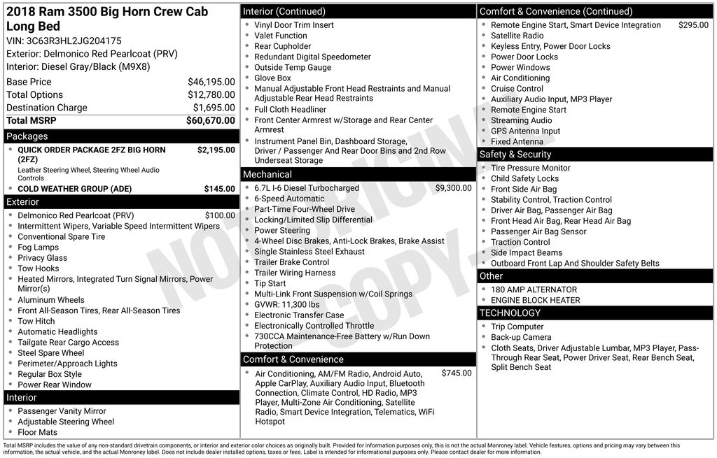 Whether you're hauling heavy loads, navigating rough terrain, or simply commuting in style, the 2018 Ram 3500 Big Horn is the ultimate workhorse that won't let you down. Experience the power, technology, and versatility that make this truck a true standout in its class.