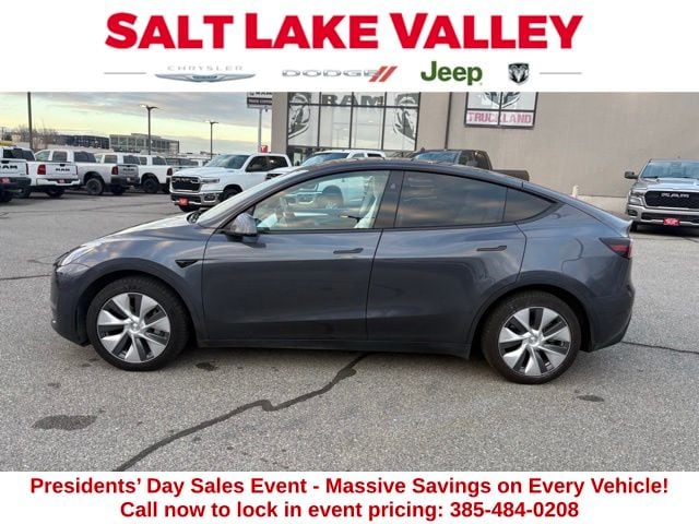 Get ready to hit the road in this Tesla Model Y, a standout choice for drivers looking for reliability, performance, and style! This impressive vehicle is packed with premium features designed to make every drive more enjoyable. Plus, youâll enjoy a $1,000 finance savings, already included in the sale price, when you finance through one of our trusted lending partners. Whether youâre searching for used cars in Salt Lake City, a dependable SUV, or a powerful truck, this Tesla Model Y delivers everything you need and more. Visit Salt Lake Valley Chrysler Dodge Jeep Ram today to test drive or explore our entire selection of quality pre-owned vehicles. Donât wait - shop online at www.slvcdjr.com or call 801-484-8755 to learn more! This amazing vehicle comes loaded with options like 14 Speakers, 4-Wheel Disc Brakes, 5 Seat Interior, 9.0 Axle Ratio, ABS brakes, Air Conditioning, Alloy wheels, Audio memory, Auto High-beam Headlights, Auto tilt-away steering wheel, Auto-dimming door mirrors, Auto-dimming Rear-View mirror, Automatic temperature control, Brake assist, Bumpers: body-color, Compass, Delay-off headlights, Driver door bin, Driver vanity mirror, Dual front impact airbags, Dual front side impact airbags, Electronic Stability Control, Emergency communication system, Exterior Parking Camera Rear, Four wheel independent suspension, Front anti-roll bar, Front Bucket Seats, Front Center Armrest, Front dual zone A/C, Front fog lights, Front reading lights, Fully automatic headlights, Genuine wood dashboard insert, Heated door mirrors, Heated front seats, Heated rear seats, Heated steering wheel, HVAC memory, Illuminated entry, Knee airbag, Lane Departure Warning System, Low tire pressure warning, Memory seat, Navigation System, Occupant sensing airbag, Outside temperature display, Overhead airbag, Passenger door bin, Passenger vanity mirror, Power door mirrors, Power driver seat, Power Liftgate, Power passenger seat, Power steering, Power windows, Premium Audio System, Radio data system, Rain sensing wipers, Rear reading lights, Rear seat center armrest, Rear window defroster, Security system, Speed control, Speed-sensing steering, Split folding rear seat, Steering wheel memory, Steering wheel mounted A/C controls, Steering wheel mounted audio controls, Telescoping steering wheel, Tilt steering wheel, Traction control, Trip computer, Variably intermittent wipers, Vegan Leather Seat Trim, and Wheels: 19" x 9.5" Gemini, making it the perfect choice for your next adventure.