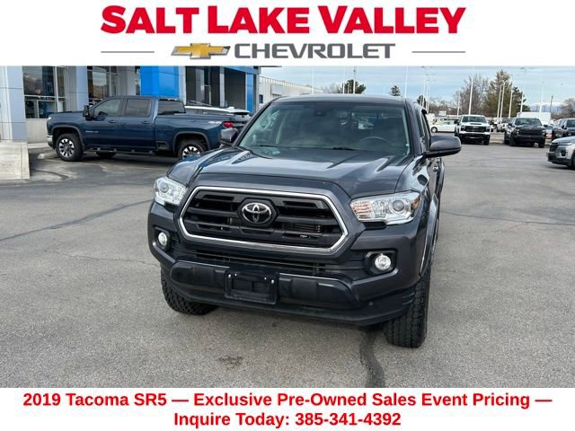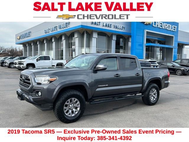 Turn every drive into something special with this Toyota Tacoma from Salt Lake Valley Chevrolet! Designed for comfort, performance, and style, this vehicle comes fully equipped with modern technology and convenience features youâll love. Plus, enjoy a $1,000 finance savings, already included in the sale price, when you finance through one of our trusted lending partners. If youâre shopping for used cars in Salt Lake City, or searching for the perfect SUV, truck, or sedan, this Toyota Tacoma delivers the dependability and value youâre looking for. Itâs the ideal match for your lifestyle - ready for everything from mountain adventures to city commutes. Visit Salt Lake Valley Chevrolet today and see why so many Utah drivers trust us for great deals on quality pre-owned vehicles. Explore our inventory online at www.slvchevy.com or call 801-969-8221 to schedule your test drive today! This impressive vehicle includes ABS brakes, Active Cruise Control, Alloy wheels, Electronic Stability Control, Illuminated entry, Low tire pressure warning, Remote keyless entry, Traction control, 16 Silver Alloy Wheels, 6 Speakers, Air Conditioning, AM/FM radio: SiriusXM, Anti-whiplash front head restraints, Auto High-beam Headlights, Auto-dimming Rear-View mirror, Axle Ratio: 3.91, Brake assist, Bumpers: body-color, CD player, Chrome Rear Bumper, Color-Keyed Overfenders, Daytime Running Lamps, Driver door bin, Dual front impact airbags, Dual front side impact airbags, Exterior Parking Camera Rear, Fabric Seat Trim (FC), Front anti-roll bar, Front Bucket Seats, Front Center Armrest, Front Fog Lamps, Front fog lights, Front reading lights, Front wheel independent suspension, Knee airbag, Occupant sensing airbag, Outside temperature display, Overhead airbag, Overhead console, Panic alarm, Passenger door bin, Power door mirrors, Power Sliding Rear Window w/Privacy Glass, Power steering, Power windows, Radio: Entune Plus AM/FM/CD w/HD Radio, Rear step bumper, Remote Keyless Entry System, Speed control, Speed-sensing steering, Split folding rear seat, Steering wheel mounted audio controls, Tachometer, Telescoping steering wheel, Tilt steering wheel, Trip computer, Variable Intermittent Wipers, and Variably intermittent wipers, offering everything you need for your next adventure.Odometer is 22561 miles below market average!Clean CARFAX.Awards:* 2019 KBB.com Best Resale Value Awards * 2019 KBB.com Brand Image Awards