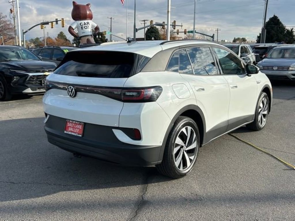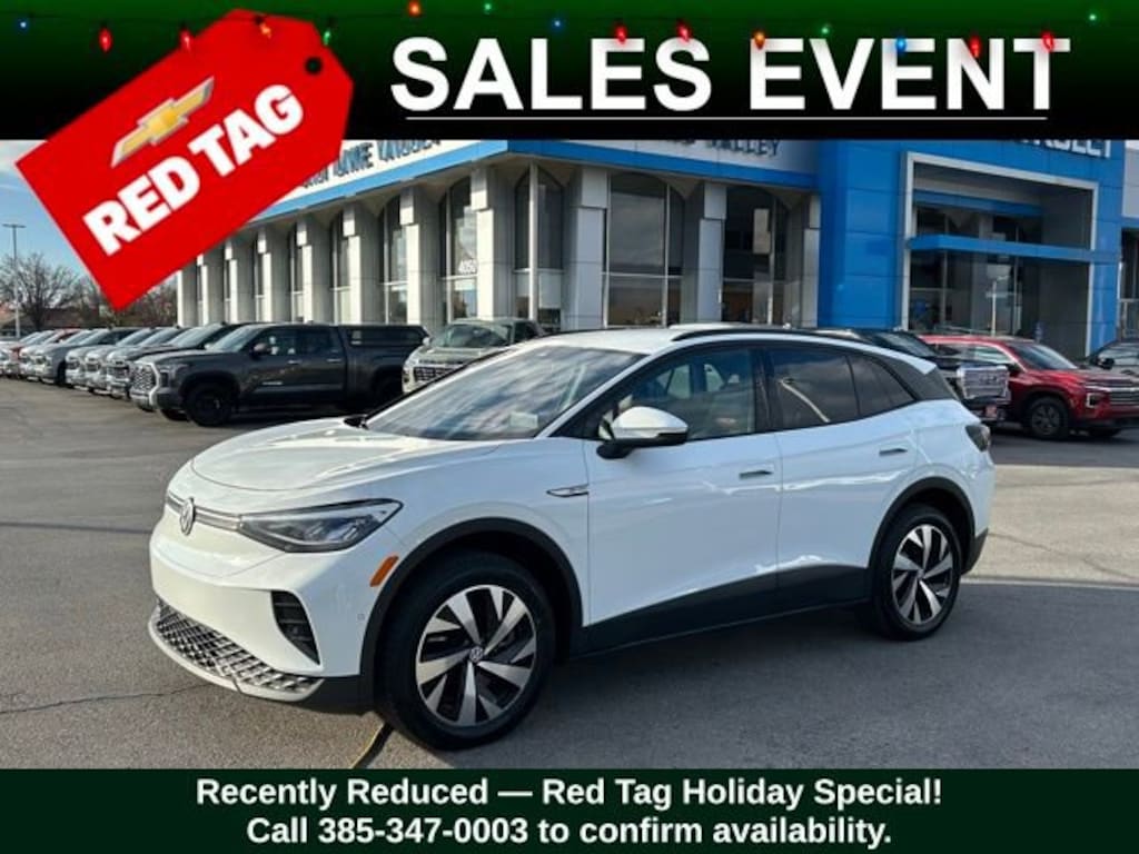 Turn every drive into something special with this Volkswagen ID.4 from Salt Lake Valley Chevrolet! Designed for comfort, performance, and style, this vehicle comes fully equipped with modern technology and convenience features youâll love. Plus, enjoy a $1,000 finance savings, already included in the sale price, when you finance through one of our trusted lending partners. If youâre shopping for used cars in Salt Lake City, or searching for the perfect SUV, truck, or sedan, this Volkswagen ID.4 delivers the dependability and value youâre looking for. Itâs the ideal match for your lifestyle - ready for everything from mountain adventures to city commutes. Visit Salt Lake Valley Chevrolet today and see why so many Utah drivers trust us for great deals on quality pre-owned vehicles. Explore our inventory online at www.slvchevy.com or call 801-969-8221 to schedule your test drive today! This impressive vehicle includes 2-in-1 (240V/120V) EV Charging Cable (DISC), 3.90 Axle Ratio, 4 Wheel Independent Suspension, 7 Speakers, ABS brakes, Air Conditioning, Alloy wheels, Auto High-beam Headlights, Auto-dimming Rear-View mirror, Automatic temperature control, Brake assist, Bumpers: body-color, Cloth Seating Surfaces, Delay-off headlights, Driver door bin, Driver vanity mirror, Driver's Seat Mounted Armrest, Dual front impact airbags, Dual front side impact airbags, Electronic Stability Control, Emergency communication system: VW Car-Net Safe & Secure 5-year, Exterior Parking Camera Rear, Four wheel independent suspension, Front anti-roll bar, Front Bucket Seats, Front dual zone A/C, Front reading lights, Fully automatic headlights, Heated door mirrors, Heated Front Seats, Heated front seats, Heavy Duty Trunk Liner w/VW CarGo Blocks, Illuminated entry, Low tire pressure warning, Navigation System, Occupant sensing airbag, Outside temperature display, Overhead airbag, Overhead console, Panic alarm, Passenger door bin, Passenger seat mounted armrest, Passenger vanity mirror, Power door mirrors, Power steering, Power windows, Radio data system, Radio: Discover Pro Max w/12 Touchscreen Nav, Rain sensing wipers, Rear anti-roll bar, Rear reading lights, Rear window defroster, Rear window wiper, Remote keyless entry, Rubber Mats Kit, Speed control, Speed-sensing steering, Split folding rear seat, Spoiler, Steering wheel mounted audio controls, Telescoping steering wheel, Tilt steering wheel, Traction control, Trip computer, Turn signal indicator mirrors, Variably intermittent wipers, VW Car-Net Safe & Secure 5-Year Plan, and Wheels: 19 2-Tone Machined Alloy, offering everything you need for your next adventure.